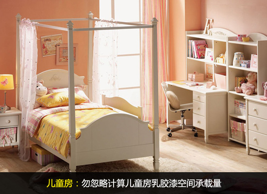 由于儿童房一般比较小,如果使用的乳胶漆过多,即使是乳胶漆产品本身是符合国家室内装饰装修材料有害物质限量标准的材料,在一定量的室内空间中因污染叠加也会造成有害物质超标的情况。所以在确定儿童房装修方案时,需按照房间面积选购涂刷乳胶漆,要注意空间承载量、预留污染提前量,确保儿童房环保达标。