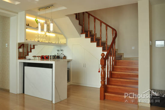 木楼梯:木质楼梯是日常生活中最常看到的,木质材料天然、纹理自然、脚感好、色彩柔和,让家居变得更加温馨、典雅。木楼梯适合用于中式风格、简约风格和田园乡村风格的家居。