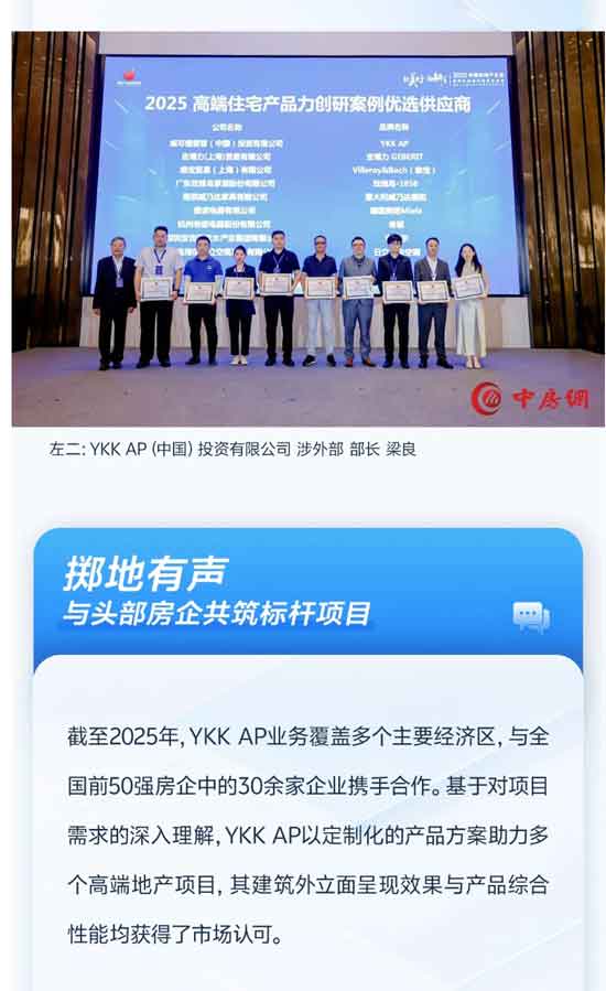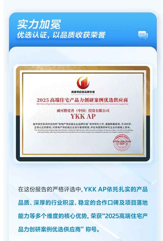 喜讯|实力获评!YKK AP入选高端住宅产品力优选供应商