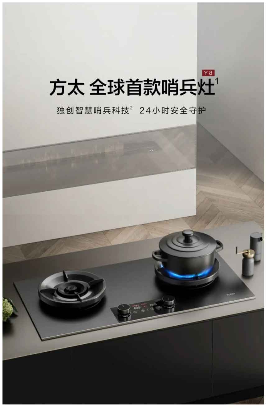 方太全球首款哨兵灶Y8,24小时智护厨房安全
